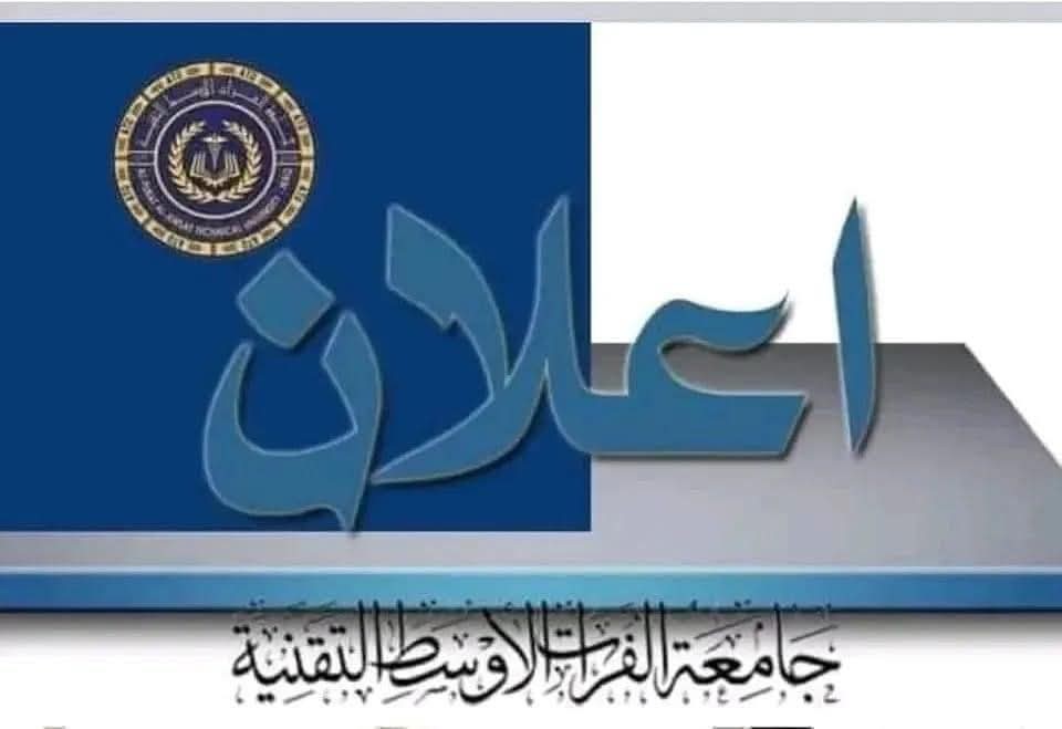 تعلن جامعة الفرات الأًوسط التقنية عن بدء التقديم للطلبة خريجي الدراسة الإعدادية...