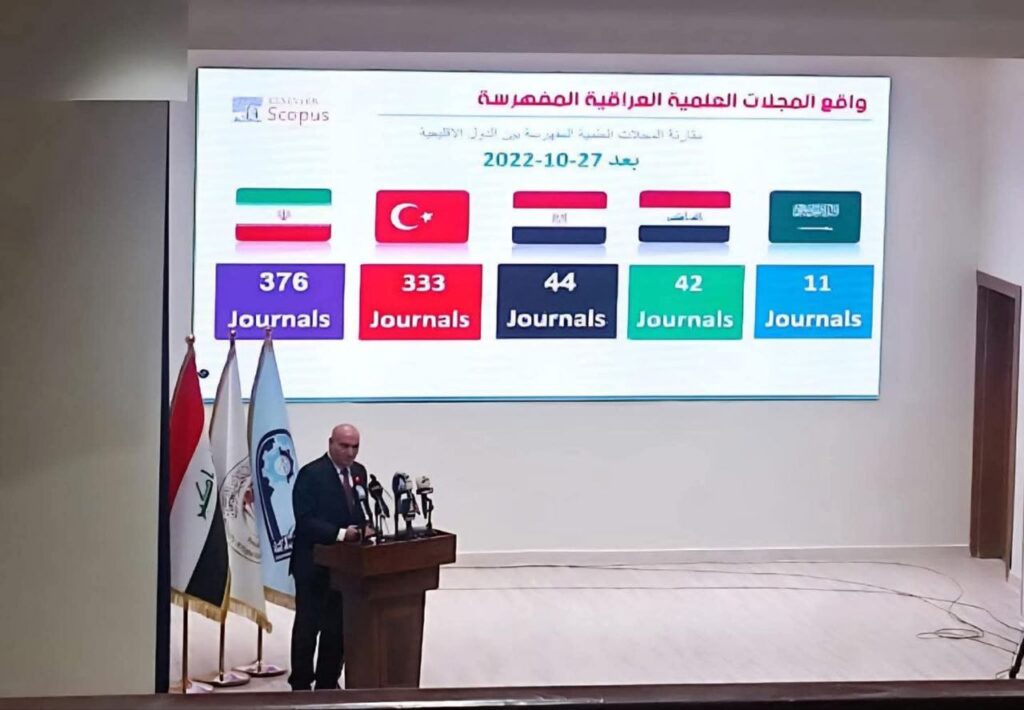 كما أشار في جانب آخر من كلمته إلى أن الشراكات الاستراتيجية مع Scopus وClarivate أسهمت في إدماج المجلات العراقية في قواعد البيانات العالمية وتزويد الجامعات ببيانات دقيقة عن الاستشهادات والأثر البحثي، إضافة إلى فتح قنوات دعم واستشارات تخصصية مستدامة.