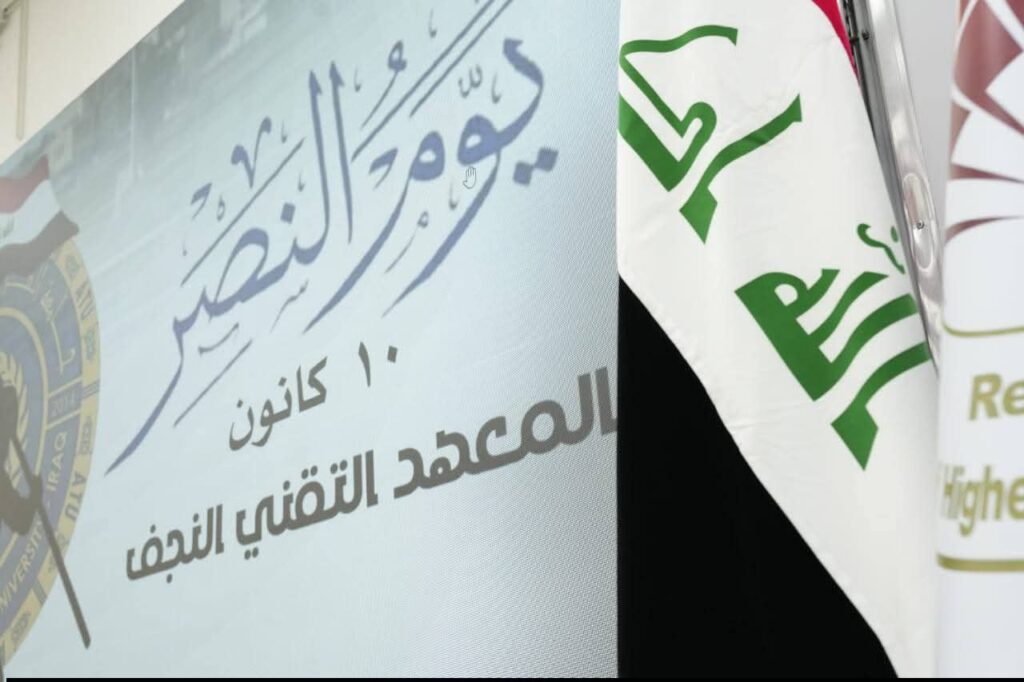 بتوجيه من عميد المعهد التقني النجف، الأستاذ الدكتور حيدر حسن عبد العبدلي، أقام المعهد احتفالية وطنية حاشدة بمناسبة يوم النصر العراقي، المصادف العاشر من كانون الأول، وهو اليوم الذي أُعلن فيه دحر قوى الظلام الداعشية وتحرير كامل الأراضي العراقية.