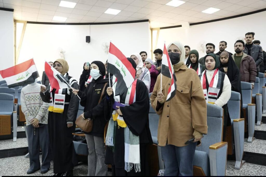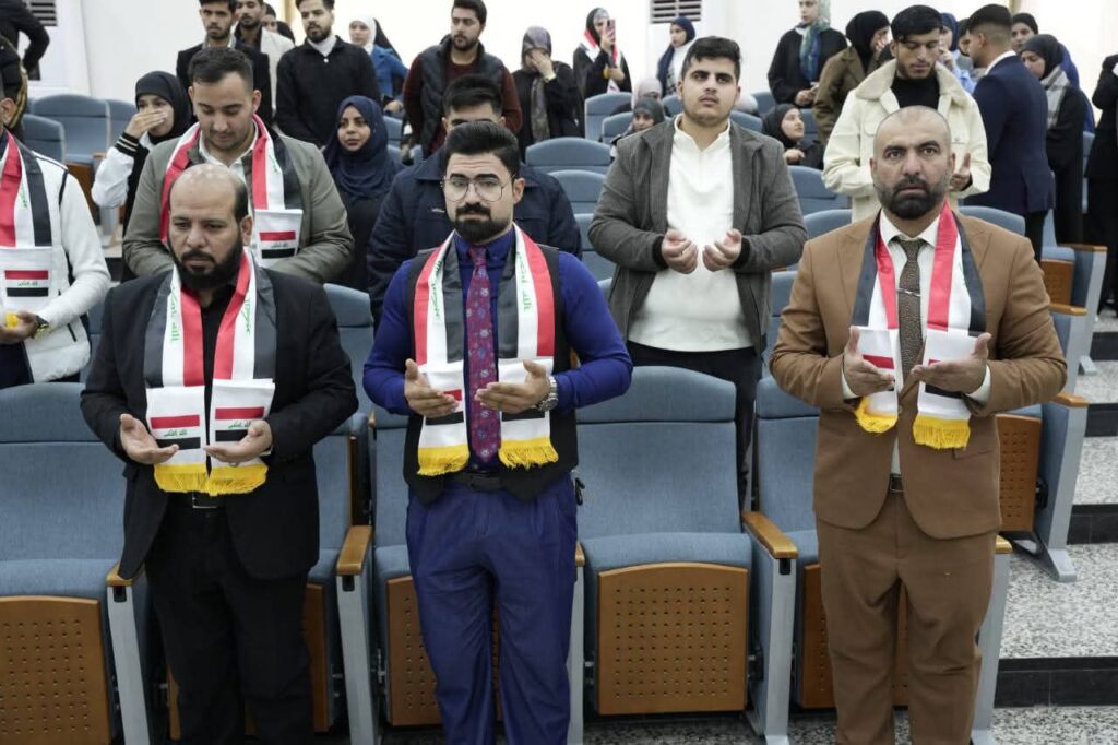 الوقوف عند عزف النشيد الوطني العراقي، تجسيداً للفخر بالهوية الوطنية.